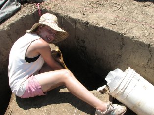 A typical day began at six in the morning when everyone met outside to load the equipment into the van and set off down the road to the Kincaid Mounds. Once at the mounds the entire crew would unload the vans and uncover the units to start the digging for the day. Each day a different student would set up the total station so that they would be able to operate the equipment in future archaeological digs and allow for elevations of the units to be accurately recorded. There were several units at different levels of excavation in which a four person group would excavate. The goal of the field school was to discover more information about the Mississippian house structures at Kincaid such as: architecture, size and content. The excavation of the unit was organized by two people digging the unit with shallow shovel scraps until they have brought the unit down ten centimeters. The diggers deposit the shovel scraps into buckets in which the two other people in the group screen for artifacts and record their findings. After the unit was down to the level three members of the group would trowel the surface to prepare the unit to be photographed. After the photograph the group would Munseil test the soil and record the details of the level. When there were features or large artifacts present the group was instructed how to create plan map which I found to be my favorite activity because you can clearly see the work you had done laid out neatly. Then the group would bring the unit down another level and repeat the process. Some of the most interesting finds at the site were an effigy drinking vessel in the shape of a person and several perfectly shaped Madison points. In addition to the work in the field the lab work trained me for identifying types of artifacts and the proper sorting and preservation methods. There were other candid learning experiences that enhanced that my archaeological knowledge such as field trips to other mound sites and museums and informal lectures on CRM work.