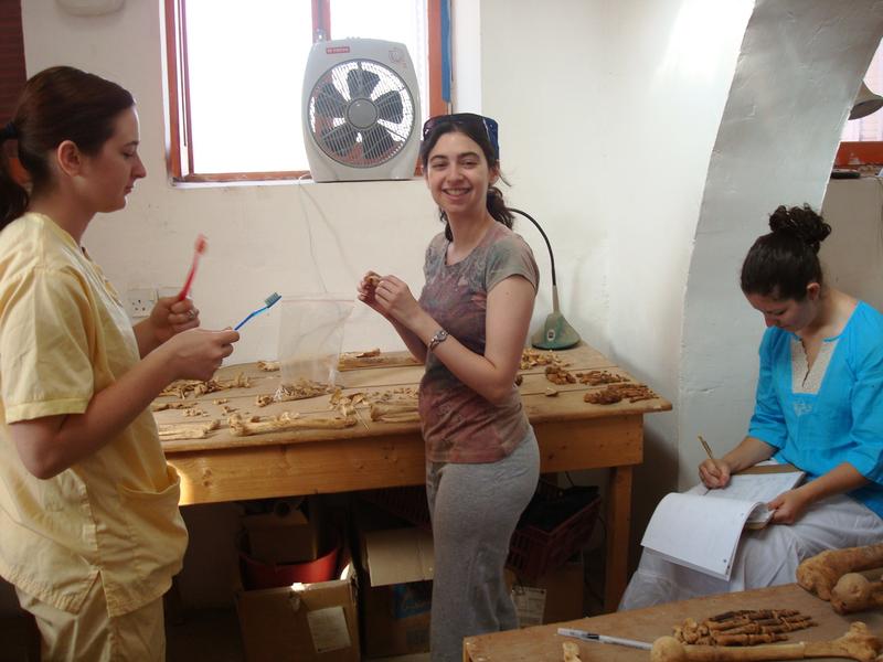Professors of the University of Arkansas Fayetteville and undergraduates from all over the US cleaned crate after crate of bones. At 8 AM we began work, cleaning each bone with toothbrushes and laying them out in anatomical position. Hair, textile, flesh, and powdered brain were bagged separately; the dry conditions supplied us with an incredible amount of soft tissue. We also practiced methods for estimating age and sex. Unfortunately, however, the looting that occurred in antiquity left us little in the way of artifacts but a few earrings and tiny figurines. What we did find in abundance was pathology. Out of the 76 individuals we examined this season, 14 were children. This suggests an epidemic, a project that a University of Arkansas grad student has undertaken. My project focused on spinal trauma. As workers, dents in the vertebral bodies (Schmorl’s nodes), compression fractures, and varying degrees of arthritis were ubiquitous in individuals as young as fifteen. This fall I will expand upon my results for my honors thesis in anthropology at the University of Illinois at Chicago.