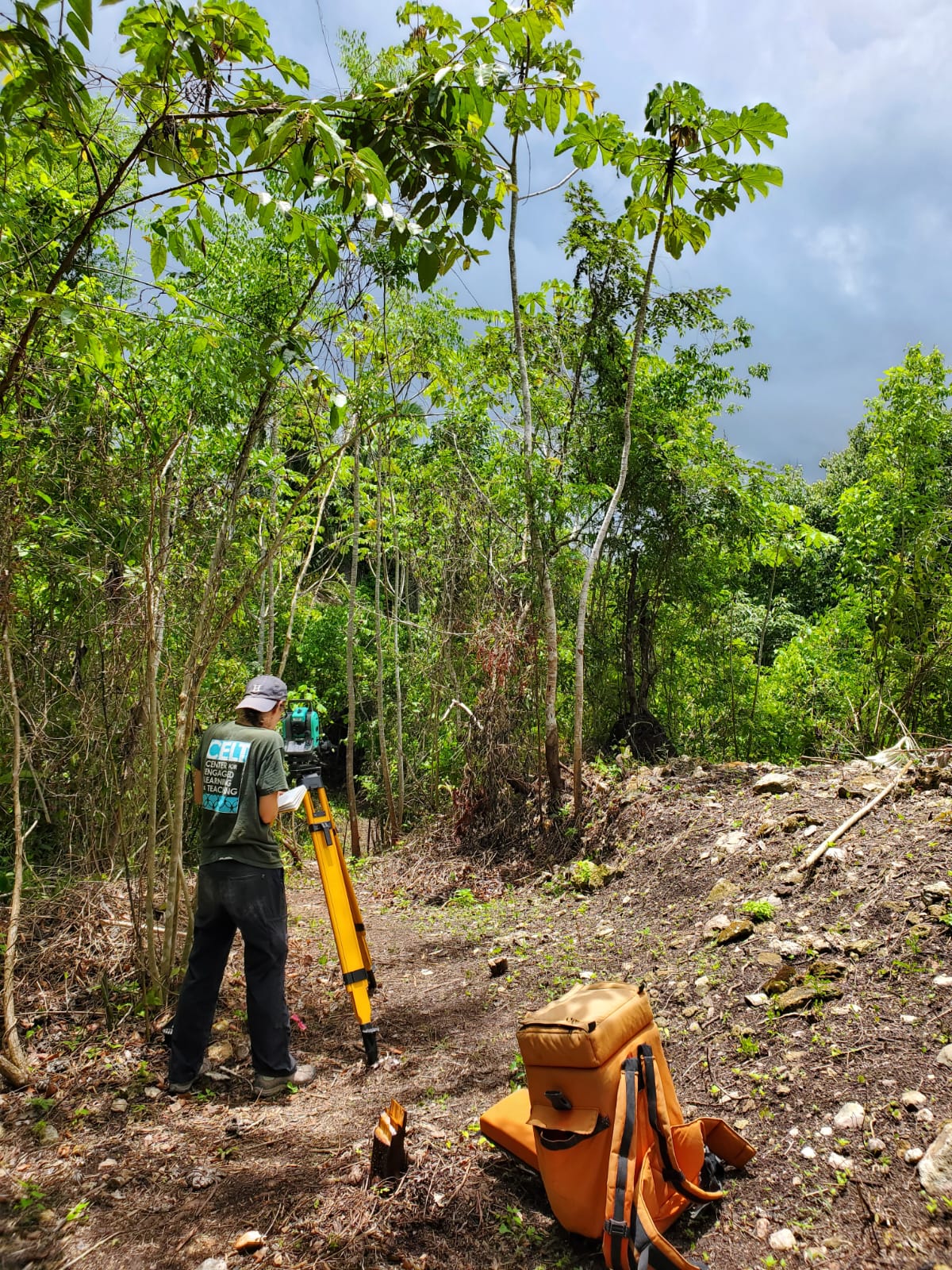 I have many favorite memories of fieldwork, but one that stands out is one particular field vehicle stuck in the mud story. At the time I was conducting research at a stone raw material quarry. I travelled to site with another group, and then would walk down the hill to the Mopan River, cross the River (in an upside down camper top/barge), and then hike up a hill to get to the quarry. On the way back, I did this in reverse, meeting up with that group to drive back to where we were staying. One day it rained a lot, and after walking up the hill to meet everyone, the car was stuck in the mud! This was not an unusual occurrence, but the car was extra stuck because of how much rain we had had, and we had to wait for someone to come with another vehicle to pull us out. This time stands out because it was one of the few times I have ever been cold while doing research in the tropics and because I remember having a lot of fun while waiting for someone to help get the vehicle out!