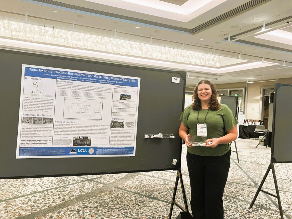 Amid the crises of the third century C.E., the Herulian sack of Athens has long been considered a turning point in the city’s development. However, scholarship remains divided as to the extent of its impact on the “death” of the ancient city. The post-Herulian wall lies at the heart of this debate, since the Athenians focused their efforts on building this new fortification out of the debris rather than reconstructing demolished buildings. Although scholars have thoroughly researched the path and chronology of the wall, there are few publications that address its broader life history as a monument. This project addresses these gaps by formulating a cultural biography of the post-Herulian wall, tracing its changing roles and significance. Drawing on archaeological remains of the wall’s topography and spolia reuse, this study analyzes how Athenians reshaped their city in the wake of this crisis. Methodologically, it employs a processual life-cycle model following the object’s itineraries, informed by anthropological theory, classical studies, cultural heritage studies, and early global studies. The wall’s deliberately restricted circuit redefined the urban center, enclosing only the Roman Agora and Acropolis and excluding other civic, domestic, and industrial areas. Its construction from spolia simultaneously memorialized the destruction and erased the monumental landscape of the classical Agora. This case study demonstrates how the life-cycle model can offer predictive pathways for understanding how reused elements adopt new meanings with changes in form, function, and custodianship. This approach highlights the behavioral practices and object agency at work, challenging the dominant narrative of “decline” in post-Roman Athens. Instead, the city’s urban reconfiguration emerges as a tale of resilience and adaptation, in which Athenians strategically negotiated their heritage to foreground certain aspects of their cultural past. More broadly, this model contributes a widely applicable methodology for interpreting monumental reuse across the ancient Mediterranean.