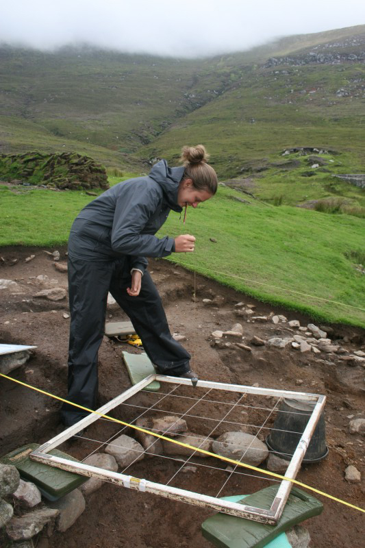 On Wednesday the weather was quite wet. We undertook post-excavation work in the morning, and in the afternoon we braved the elements and headed to Slievemore to take photos for photogrammetry models of some of the houses in the iconic Deserted Village.