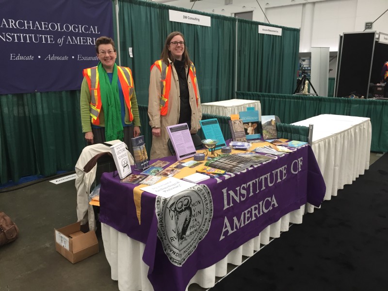 For Laurel Sparks, AIA Lectures and Fellowships Coordinator, the hundreds of academic sessions at the meeting were a great opportunity to scout for lecturers for upcoming National Lecture Program tours. Also at the meeting, AIA Senior Programs Coordinator, Meredith Langlitz, co-moderated a session on effectively communicating about archaeology to the public that included 3 minute elevator pitches as well as a juding panel that included AIA VP for Outreach and Education, Deborah Gangloff. Throughout the meeting, Laurel and Meredith were able to catch up with AIA Society Officers and members from across the United States and Canada. Be sure to look for the AIA’s booth at the SAA’s next meeting in Washington DC!