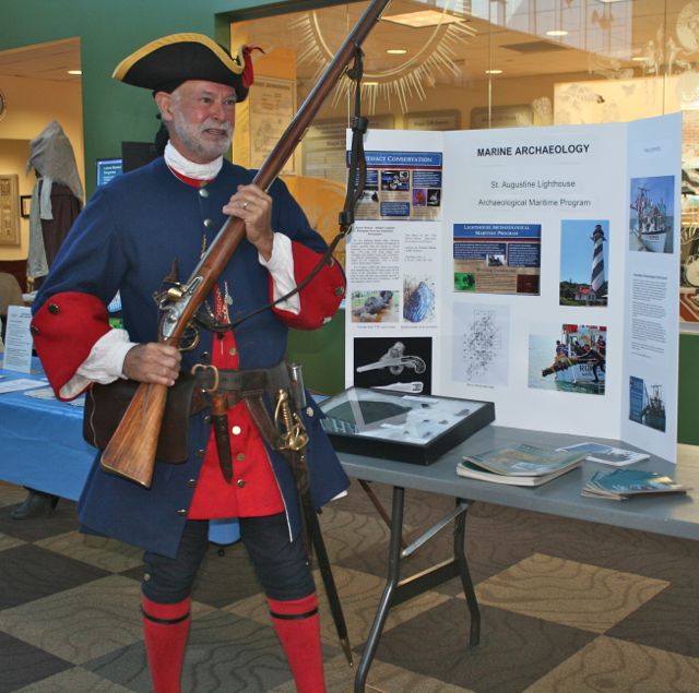 A second related lecture on the University of Florida campus took place on November 5th. Charles Meide, Director of the St. Augustine Lighthouse Archaeological Maritime Program (LAMP) discussed marine archaeology in general and the specific findings from the LAMP excavations of a British Loyalist shipwreck about a mile off-shore of St. Augustine from 1782. He discussed conservation and historical research of the artifacts. About 20 people attended the lecture.