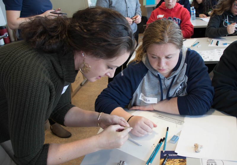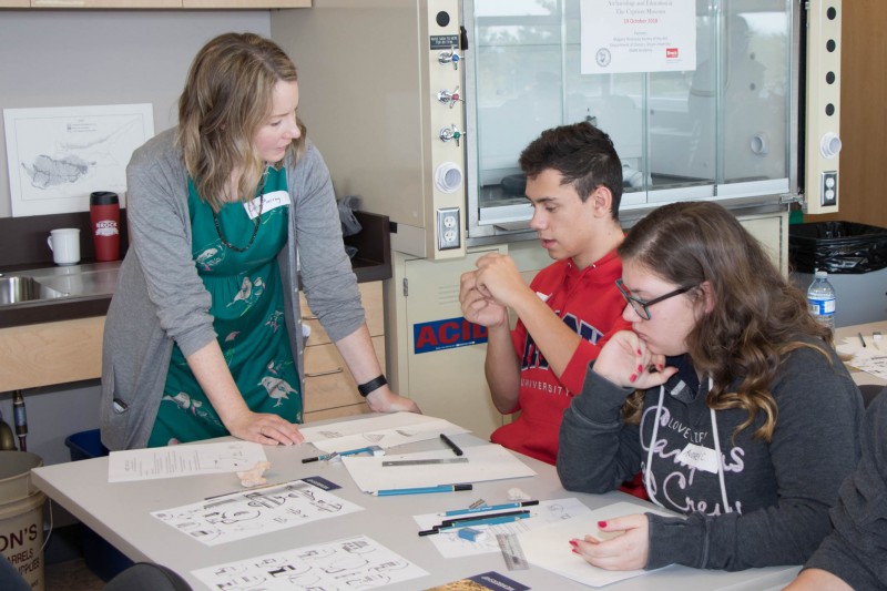 Dr. Carrie Murray led the students on a tour of the Cypriote Museum and then provided a lesson in archaeological illustration in the archaeology lab using artifacts from the collection. The students were excited to each have an ancient sherd and figurine to draw. The student drawings now hanging in a Museum display case show the students’ newly found skills in recording artifacts and artistic subjectivity needed for interpretation and analysis. The Society hopes that this is the first of many events like it at the Department of Classics.