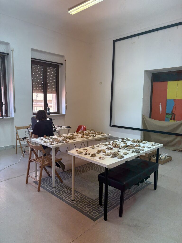 The Khora of Archaic Morgantina Project (KAMP) is investigating the social and economic lives of rural communities and their relationships to the urban center of Morgantina during the colonization of Archaic (600-480 BCE) Sicily. In our inaugural 2025 season, KAMP conducted a magnetometry campaign exploring several sites beyond Morgantina’s urban core, including a flat-topped ridge located 0.5 km from the city center, previously identified through terrestrial survey in the 1990s. Alongside geophysical prospection, KAMP also reanalyzed all sherds and artifacts collected by the survey at this rural site.