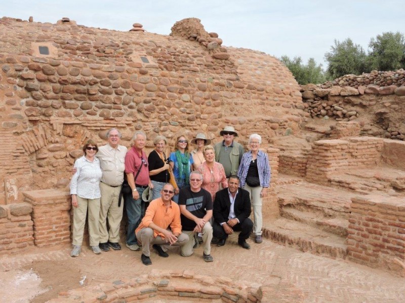 One of the best things about traveling with the AIA is that the group had access both to experts on the historical sites and entrance to one site that has not yet been opened to the public. In Sijilmasa, the group was extremely fortunate to have Dr. Jim Miller, co-author with Dr. Ron Messier on the definitive book on the city, lead us around and explain the most significant parts of this huge site. In Aghmat, Bernard Morin, a French painter and artist, enabled us to learn far more about the site than would otherwise have been possible. Indeed Aghmat, where Dr. Messier has directed the excavations for more than ten years, has just been awarded an AIA and Hilton Worldwide Award Site Preservation Grant to help preserve its major buildings—a hammam (public bath), the grand mosque, the adjoining ablution hall, and the royal palace.