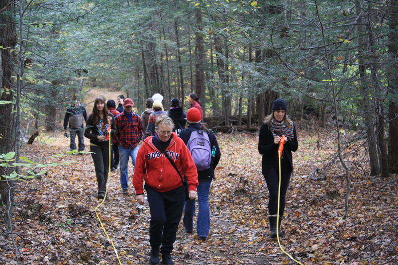 On National Archaeology Day AIA-Western Massachusetts members were joined by students from Mt. Holyoke and Smith colleges, members of the Whately Historical Society, and local residents to explore an archaeological site at the MacLeish Field Station (West Whately, Massachusetts) and to learn about forest archaeology and historic sites. The program, organized by Matt Emerson and Scott Bradbury, addressed regional history, issues of landscape use, and also taught participants useful skills such as how to read a map, take measurements, read a compass, and how to measure one’s pace for site recording. Over the course of the day attendees participated in a guided walk and created a sketch map of a historic house site dating to the late 19th-early 20th century. The event culminated in cider and donuts as well as a raffle for two Marshalltown trowels.