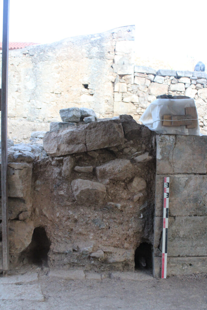 In the northern part of room 32, part of the façade of the door, which retains the lintel with a pillar base, made of gypsum (Fig.3) was revealed.