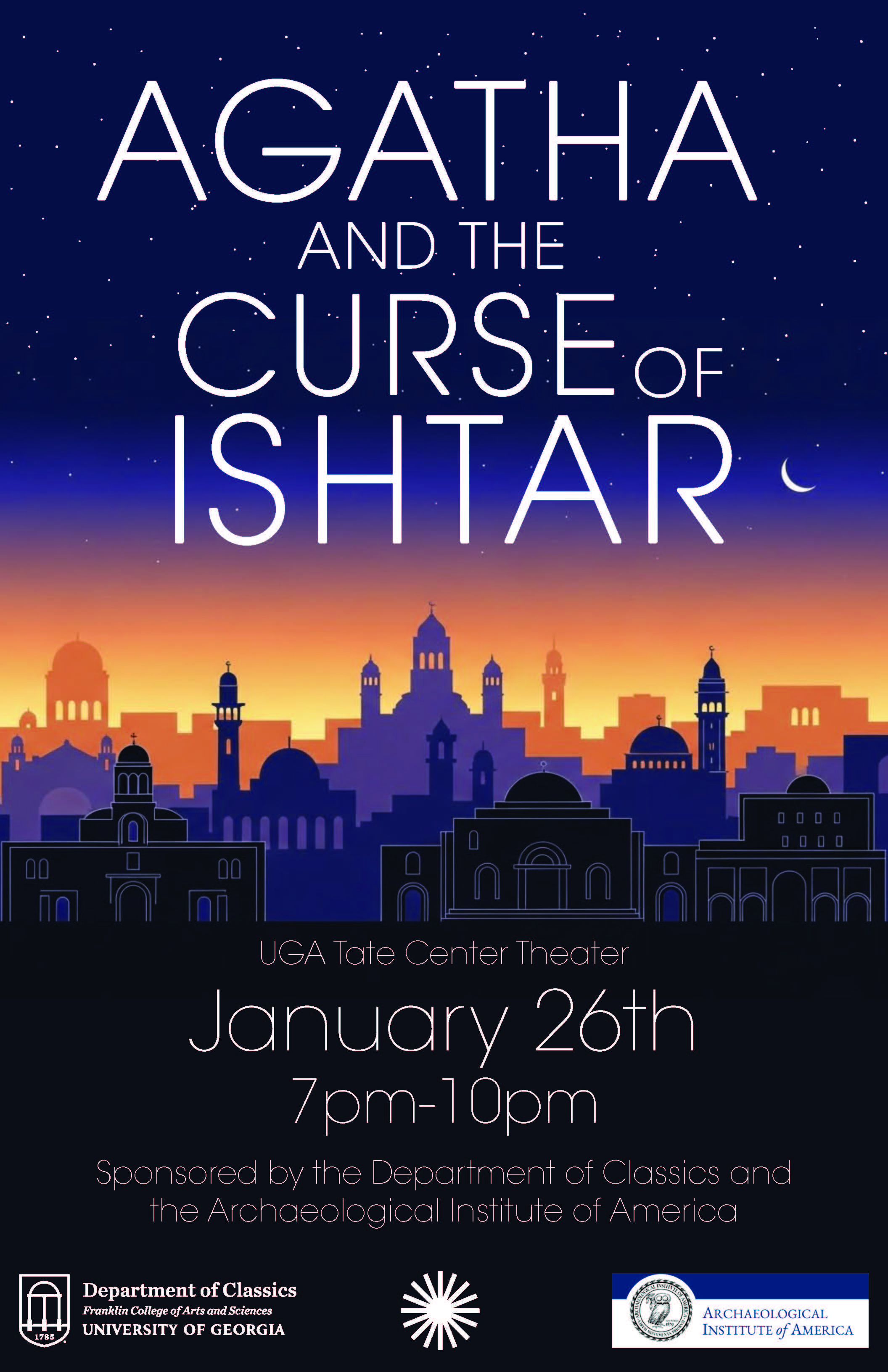 On February 23, the Athens (Georgia) Society of the AIA hosted a Society Outreach Event, an Archaeological Cinema Night. In conjunction with the University of Georgia, the Society hosted a screening of “Agatha and the Curse of Ishtar.” Nearly two dozen people enjoyed the film and after, moderators answered questions about archaeology. AIA Society President Erv Garrison noted that attendees “were very complimentary of the film”!