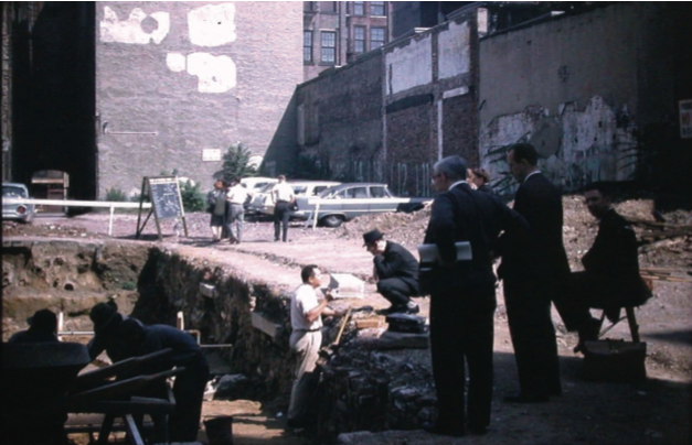 At Franklin Court, the site of Benjamin Franklin’s House in Philadelphia and part of Independence National Historical Park, a team of designers, engineers, and archaeologists offered a revolutionary solution during America’s Bicentennial in 1976 by revealing the site’s historical and aesthetic authenticities through real and exaggerated elements. The result was the construction of a spatial montage that never confuses the present with the past yet allows visitors an open-ended experience of history, memory, and time. Earlier plans in the 1950s to celebrate Franklin on the site of his house included building a memorial park or architectural reconstruction. They were rejected despite the use of both approaches within the National Park Service (NPS) and the nation in general since the 1920s. The alternative solution proved that interpretation and somatic experience could be achieved together through the skillful combination and display of above- and below-ground archaeology as well as reconstruction, twoand three-dimensional historic space as a hidden urban court and garden, an abstract house plan and volume (the famous “ghost structure”), and a multimedia underground museum (Figs. 1-3). The brilliance and success of the design solution lay not only in the diversity, placement, and juxtaposition of the site’s interpretive components (both archaeological remains and “interpreted” features) but in the recognition that the original hidden enclave setting of the Franklin site could offer up a powerful experience that brought time and space together in an urban oasis appreciated in Franklin’s time as well. The architectural critics and preservation community praised Franklin Court, and the site has continued to welcome millions of visitors since it opened in 1976. The late James Marston-Fitch, America’s foremost preservation educator and critic, pronounced Franklin Court “… the most successful of all [archaeological sites] … marking a new level of maturity in American preservation activities.” This was no doubt due to the extraordinary team assembled by the NPS under Penelope Batchelor, including archaeologists John Cotter, Paul Schumacher, Bruce Powell, and Barbara Liggett, and the design team of Venturi and Rauch (Venturi Scott Brown & Associates), John Milner, AIA Architect, and engineers Keast & Hood for the court design.