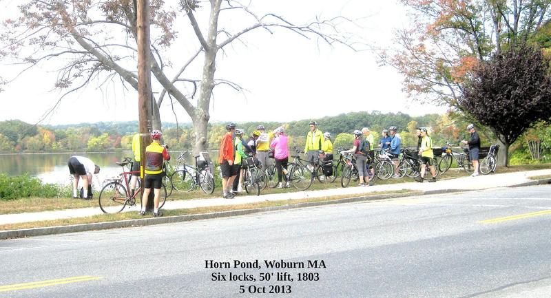 On a lovely fall Saturday, the Middlesex Canal Association had its 11th tour by bicycle of the canal route, Charles River to Merrimack River, part of International Archaeology Day. The tour started at the plaque commemorating James Sullivan, first president of the canal company, 1793-1808 (and of the Massachusetts Historical Society, 1791-1806), in Sullivan Square, Boston, and ended in Lowell with a return by train to Boston. The bicycle tour covered 27 miles along the historic canal. A highlight was the visit to the canal visitor center/museum at the Billerica Falls of the Concord River, the summit of the canal from which water was supplied to operate the 20 locks. There were 18 participants in this event on October 5th.