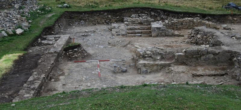 We had found steps leading to a long gone upper floor last season (2014), and also a stone wall which was confirmed as being bonded with clay rather than mortar, suggesting that there was perhaps a phasing in the building of the East Range, and that even the upper storey might have been a later addition to an earlier single storey building.