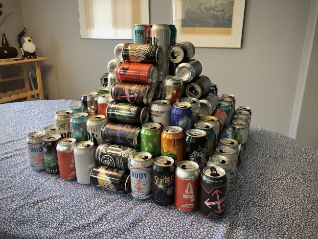 156 Empty beer cans: 12 oz, 16 oz, and 19.2 oz