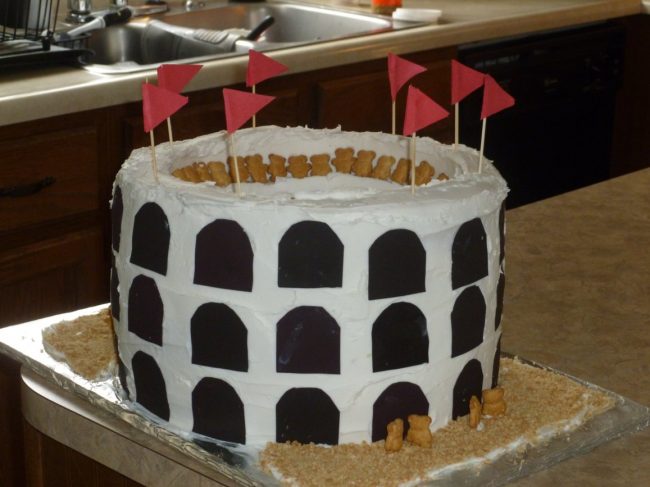 cake mix, fondant buttercream, toothpicks, construction paper and teddybear grahams