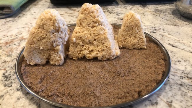 Plate, Kinetic Sand, Marshmallows, Rice Krispies