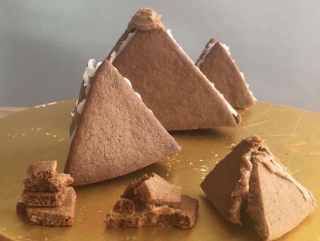 Homemade gingerbread, cake glue and Lotus spread on a cake board