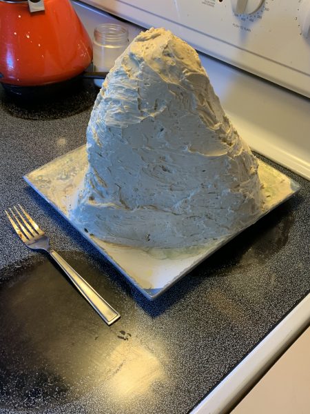 Homemade 5 layer rainbow vanilla cake and homemade vanilla buttercream frosting. All from scratch and modeled myself
