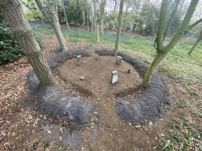 Wood, earth and ash. Part 3 of an exploration of henge monuments in 3 parts: wood, fire and stone. Ash from the burning of wooden henge used to emphasise outer bank of henge. Inspired by the henge monuments of the British Isles and Ireland.