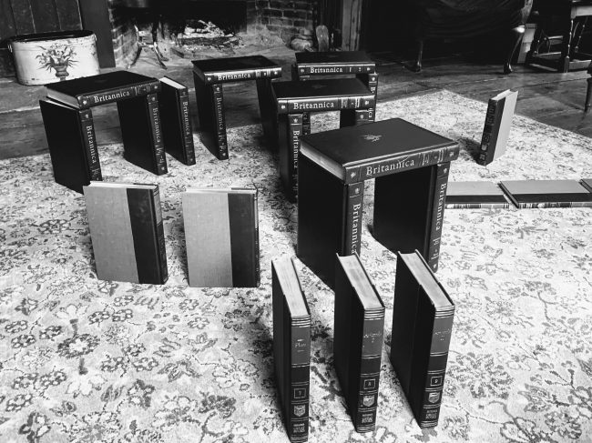 1990’s era Encyclopedia Britannica + Bonus books, 1800’s floor/fireplace & patterned rug