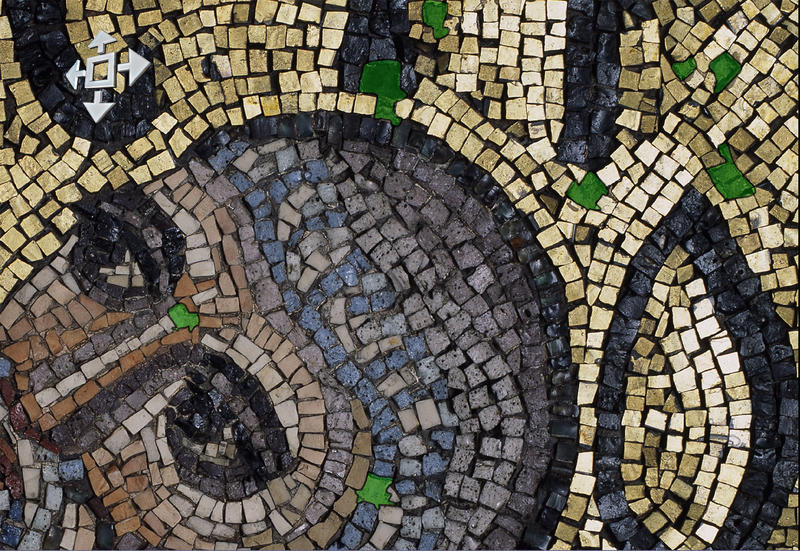 To document the conservation treatment of the mosaic of the Monastery of St. Catherine’s in the Sinai, we relied on high-resolution digital photography and image-processing software that can now be used even on scaffolding. A system was developed to record and manage the data at a scale of 1:1. Given this facility we could highlight and characterize every single tile without losing sight of the overall picture (for example, in places where one tile was missing or had been replaced). Conservation of the mosaic was made possibile thanks to funding by the Emir of Qatar, Sheik Hamad bin Khalifa Al Thani, and the Getty Foundation.