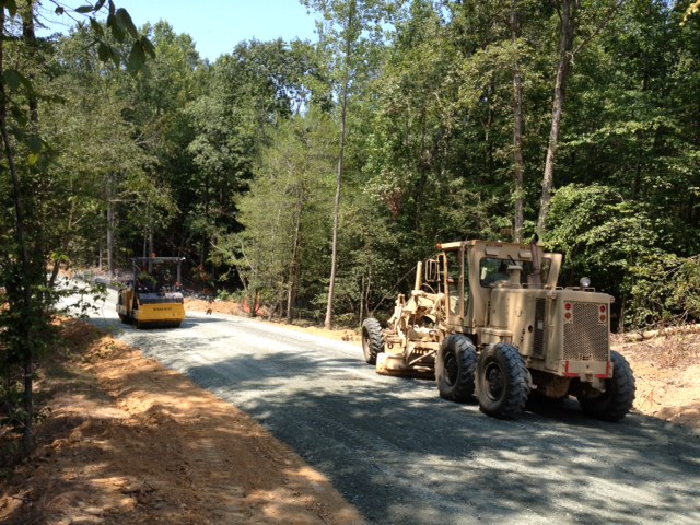 From 14 July, 2012 through 9 August full scale operations by the VA National Guard completed the major infrastructure of the Stafford Civil War Park. Operations were non-stop, on some days working 14 hours a day. Eighty Virginia Army National Guard soldiers of the 276th Engineer Battalion’s, 180th Horizontal Construction Company, and 189th Bridge Company worked on the site. They were backed up by 30 soldiers at their home base who provided fueling and vehicle maintenance for their nearly 60 construction vehicles, as well as food services and other logistics support for the soldiers. The VA Guard soldiers completed the fine road grading, stone emplacement, and stone compaction for 3,780 feet of roads and parking areas that now link and make accessible eight historic sites. In all, soldiers transported, emplaced, compacted, and rolled just short of 5000 tons stone donated by Vulcan Materials Inc., and this was all at no cost to local Stafford taxpayers. Significant difficulties with rain and unexpected soil conditions made the effort more complex than anticipated, but in doing so also enhanced the training mission value.