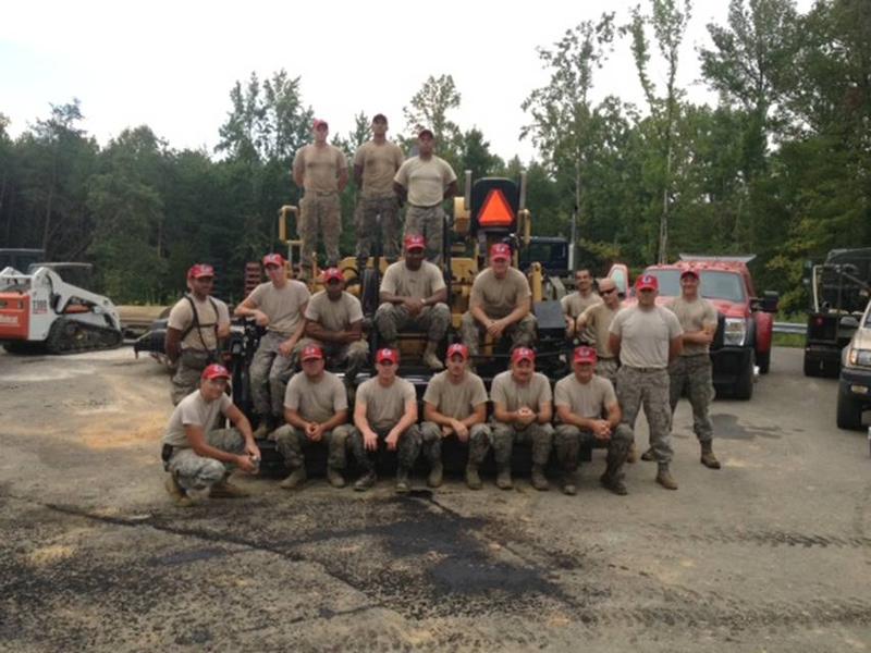 Beginning on 30 July a second deployment, this time of the VA Air National Guard’s 203rd Red Horse (Civil Engineering) Squadron, and more heavy paving equipment arrived. This unit, well known in the US Air Force for its road and runway construction skills, worked with Army Guard soldiers on final road preparation and then paved all of the roads as part of a training mission. First paving was completed on 2 August with all paving completed on 9 August. In all they put down 9,985 tons of asphalt. This park’s development is one of the largest Civil War preservation efforts in the Stafford / Fredericksburg area since work done by the Civilian Conservation Corps during the 1930s. It has and been estimated to have been worth over 2 million dollars. The FSCWS was responsible for the successful application for the VA Guard support, and the day-to-day management of both training exercises. They maintained a minimum 12 hour a day on-site coverage of the event over the entire period.