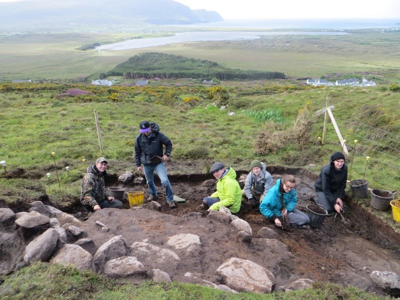 So how did we do on the first week of the excavations at the Cromlech Tumulus site on Slievemore Mountain? Well I don’t think we did too badly at all. The first trench cut at the western end of the site is perfectly located over the turf mound, with everything neatly contained within its boundaries and nothing jutting out at an unexpectedly weird angles.. There are no immediate problems with the chosen methodology and no reason to suspect we shall be needing any equipment we haven’t already on hand. The one little cloud on the horizon is that whilst the archaeology is pretty much the exact shape we thought it would be, and it is clearly in the place we thought it would be, it is certainly not made from the stuff we had predicted and it really isn’t the type of archaeology we had expected either.