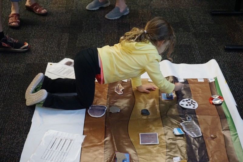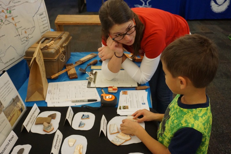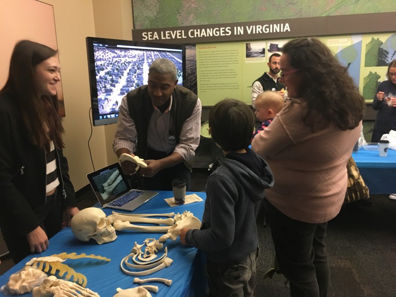 The archaeology fair had an integrated thematic structure, with stations thoughout the Science Museum of Virginia. Stations located in the main room centered on eight key questions and supplemental activities were placed in the museum’s regular exhibit spaces with19 presenters and 28 student organizers involved in the event. Event activities included an Art Lab, Challange Lab, mock excavation, presentations on current archaeological activities in Virginia, mapping a shipwreck and more! Throughout the day, about 300 people visitited the museum with positive feedback from both the presenters and the visitors.