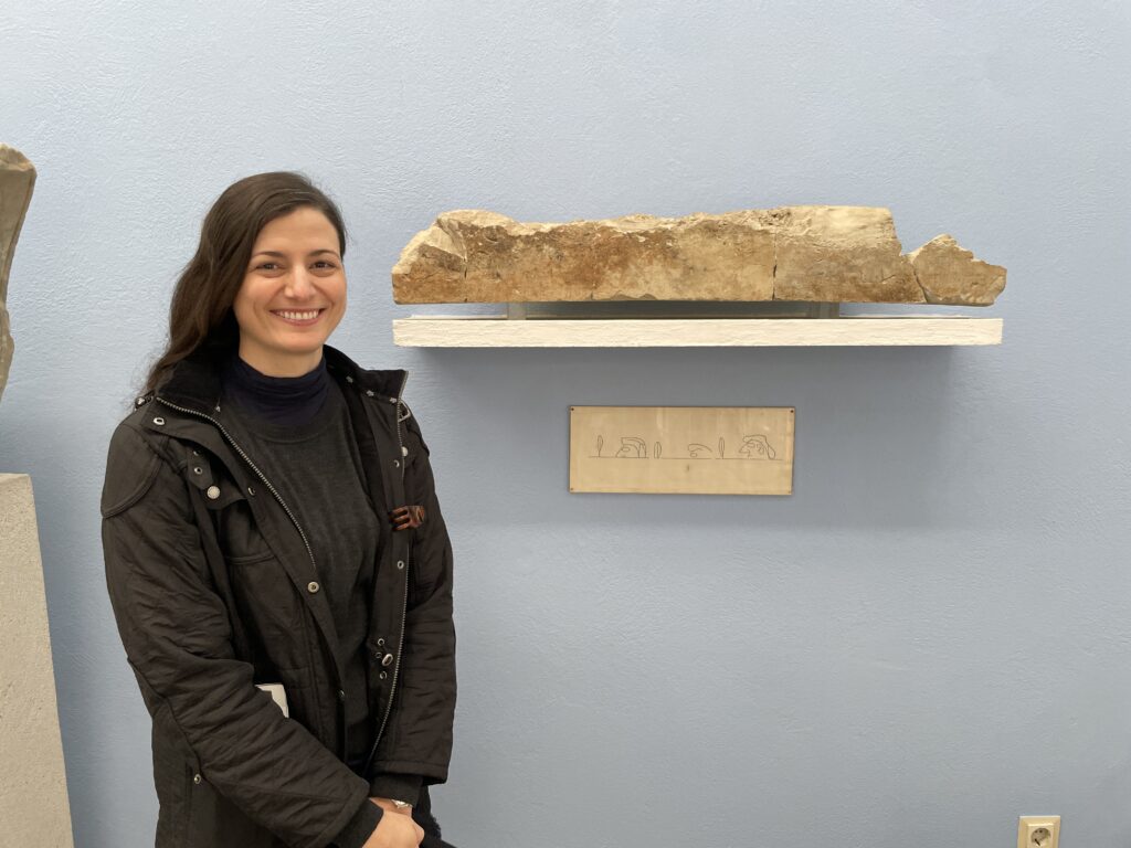 While I based myself in Athens, I traveled to the island of Samos to conduct site-based research. My primary focus was the archaeological site of the Heraion itself, where I was able to examine the remains of multiple iterations of the temple in situ. Although I had studied these phases extensively through published plans and photographs, being physically present at the site gave me a much clearer sense of the scale of the buildings, the sequencing of their construction, and their relationship to the surrounding landscape. I also visited the Vathy Museum, which houses many of the sanctuary’s most significant finds, and the Archaeological Museum of Pythagoreion, which preserves material from the ancient city. I studied the placement, scale, and craftsmanship of monumental sculpture, leading me to new considerations about the interaction between these works and the temple’s architectural program. A true highlight of my time on Samos was visiting the island’s limestone quarries, where stone for the temple’s construction was extracted; the vast hollowed-out spaces formed substantial chambers to wander through, their ceilings upheld by massive pillars left in place.
