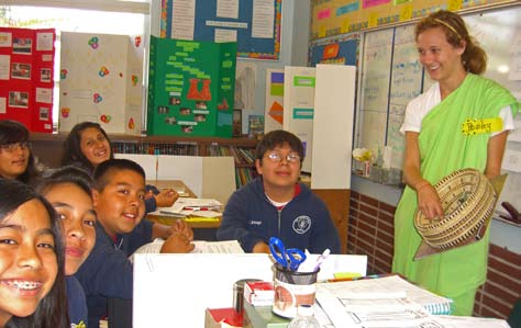 In California, eight Pepperdine University students donned togas and other classical garb to teach a fun and interactive lesson about the world of Greek and Roman art and archaeology to eager sixth graders at St. Agnes School in south central Los Angeles. The Pepperdine students, from art and art history to business and psychology majors, are part of a service-learning project created by AIA and Pepperdine faculty member Cynthia Colburn.