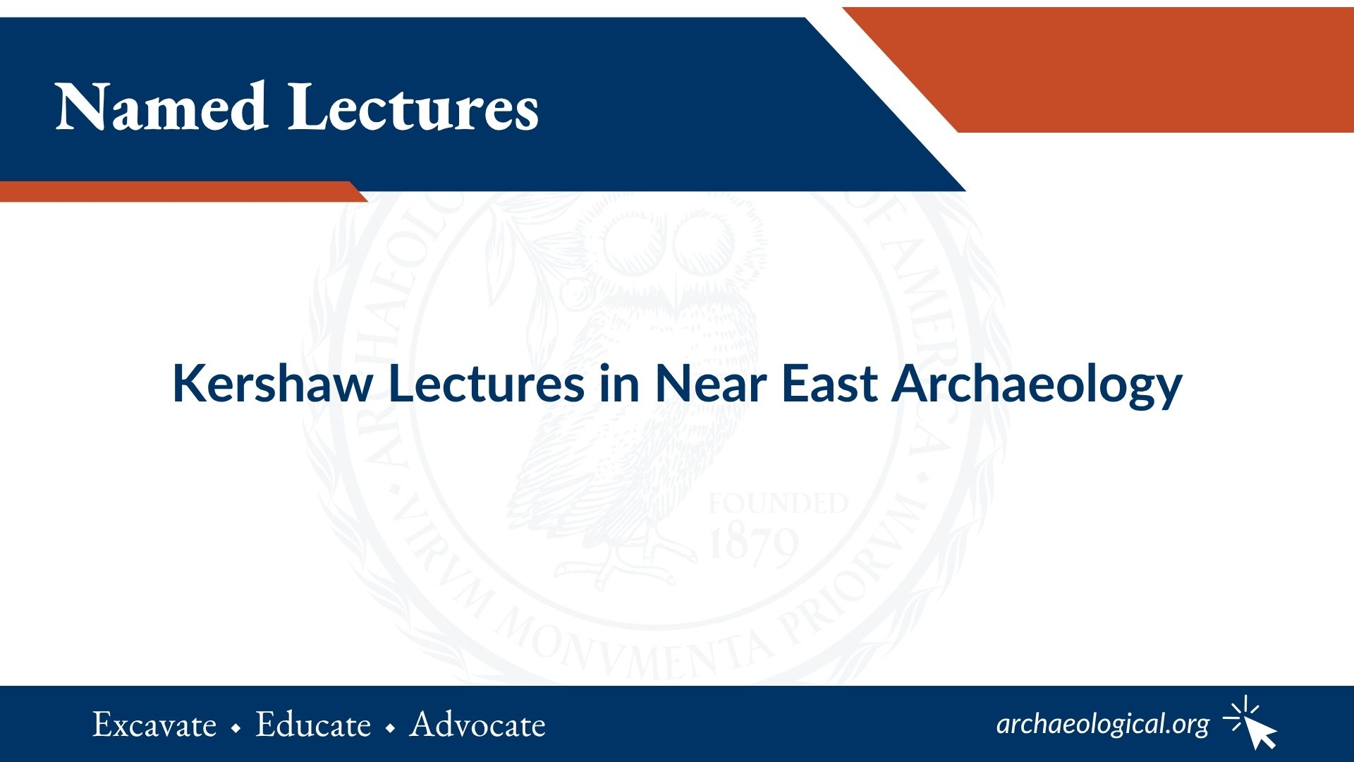 The Kershaw Lecturers are recommended by the AIA Near East Archaeology Interest Group to the AIA Lecture Program Committee.