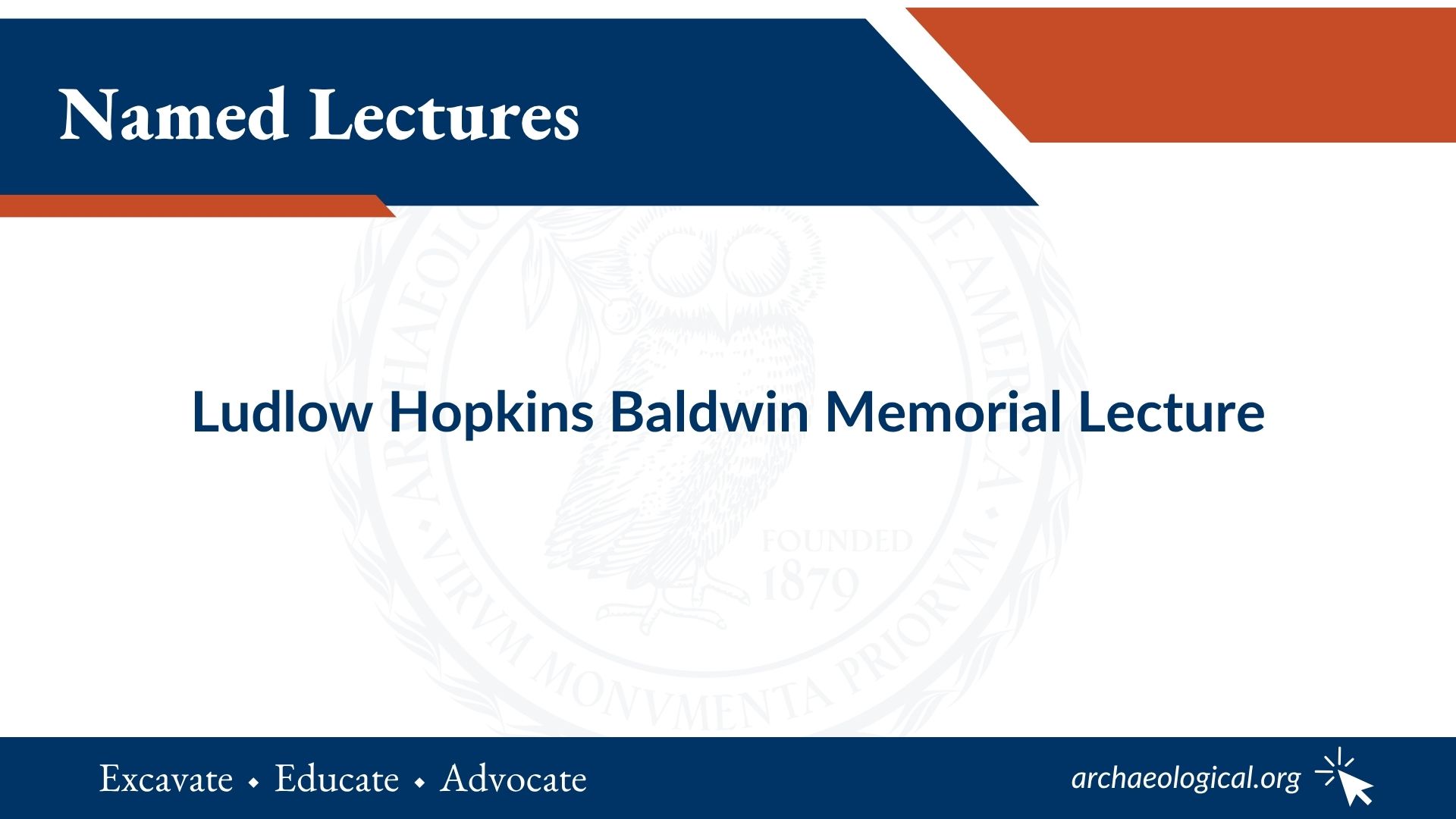 Ludlow Hopkins Baldwin was born in 1905 in Baltimore. He was Headmaster of Gilman School in Baltimore and later lecturer in Archaeology at the Community College of Baltimore. He was President (1969-1974) and Secretary (1978-1985) of the Baltimore Society of the Archaeological Institute of America and an AIA lecturer in 1974-75.