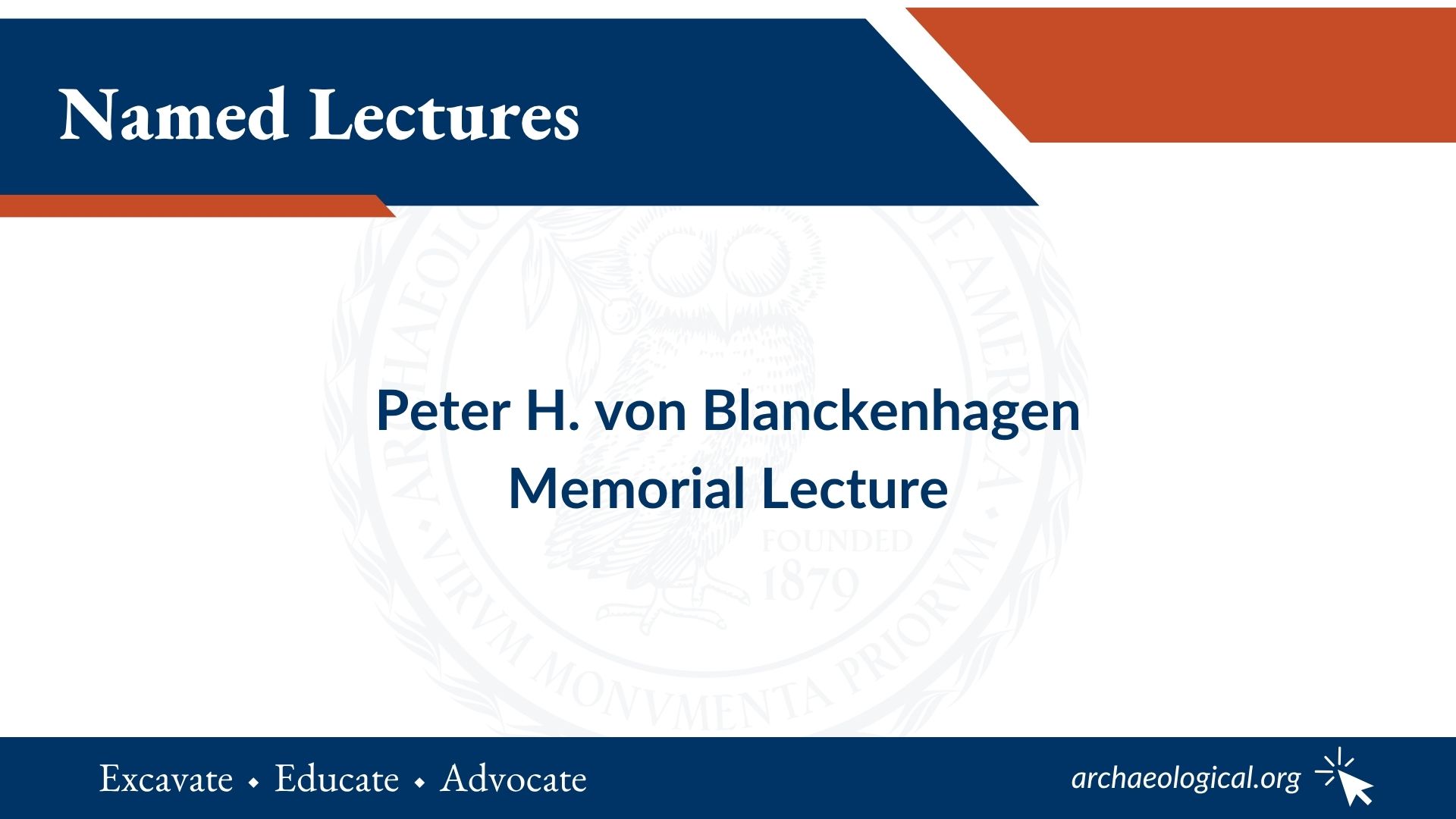 The Peter H. von Blanckenhagen Memorial Lecture was generously endowed by one of his former students, Elizabeth Bartman, and her husband, Andrew Solomon. The Lecture is given annually on a topic related to Greek or Roman art and archaeology.