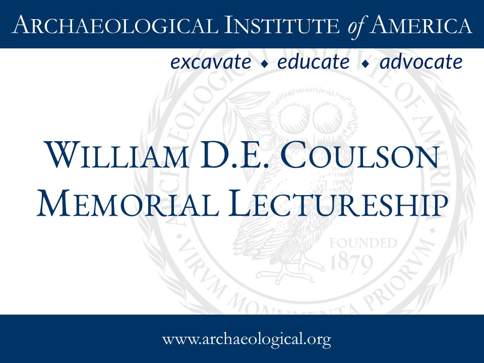 The Coulson lectureship was established in 2006 honor of the late Professor William D.E. Coulson. Dr. Coulson was Professor of Classics at University of Minnesota, and Director of the American School of Classical Studies at Athens. His excavation work included Nichoria, with the Minnesota Messenia Expedition, Naukratis in Egypt, and Kavousi and Halasmenos in Crete. He published broadly, including important work on the Dark Age pottery of Messenia.