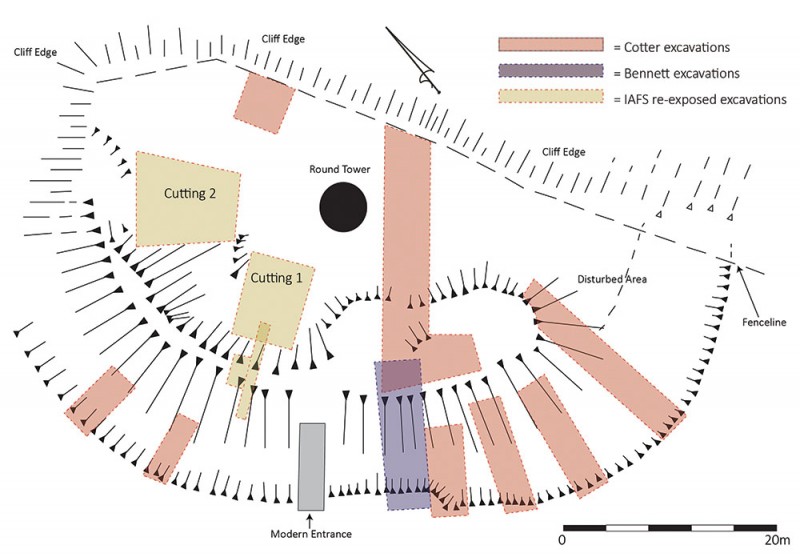 In January 2018, the IAFS, under the direction of Denis Shine and Stephen Mandal, commenced archaeological excavations at the site as part of an international field school. The main agenda for the excavation and associated works in 2018 was to: a) clear the site of vegetation and define the monuments; b) re-expose the cuttings originally excavated by Claire Cotter before undertaking a selective programme of archaeological excavation and environmental sampling (leading to a programme of AMS dating) and c) incorporate the dig into a full program of historical and archaeological research, so that Carrick and its relationship and importance to the surrounding region might be better understood.