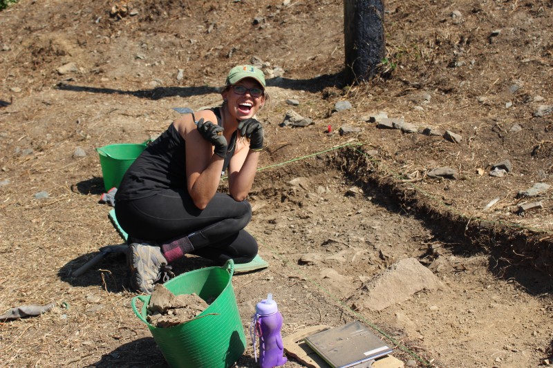 This week was a lot of the same old, same old. I moved into Cutting 4, our test trench, to find the returning wall of the eastern building. The team consisted of Danni, David, and myself. When I joined them, they had already cut down through the sod and uncovered a layer of rubble but had yet to find anything.