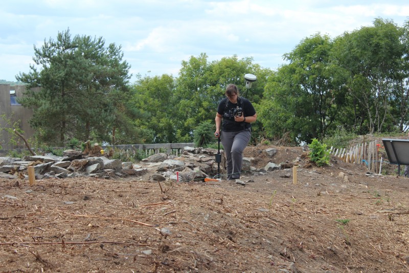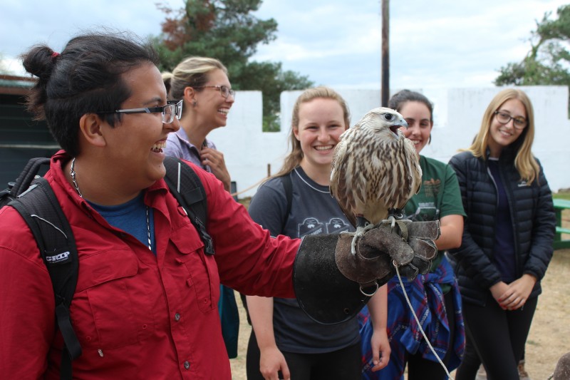 On Wednesday, Ashely Green arrived to conduct GPR and EM geophysical surveys of the fortification site and the town of Carrick. While Ashely did her surveying work, the rest of the students continued in our cuttings. In the morning, Gigi and I finished our section drawing of the Cutting 1 sondage. After that, I started correcting and completing the Cutting 1 feature sheets, and then joined Cutting 2 north and helped them trowel back the section between Claire Cotter’s two trenches. At the end of the day, we packed up early to visit Jim and the birds at the falconry center next door!
