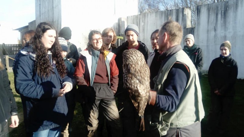 On Wednesday, we were invited to meet the birds of prey kept in the (replica) castle next door to the Big Dig. Jim introduced us to his birds, we asked questions, and took photos with them. It was great fun, and was a good opportunity to meet our “neighbour.”