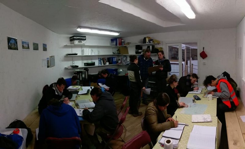 Friday was a busy day, as we had a lot to accomplish before the end of the field school. Most students were finishing feature sheets, which we had been working on all week. Others continued planning and photographing and ensuring everything was registered correctly. We also took samples from two different features and hoped to recover organic material, particularly charcoal, for radiocarbon dating. After these were collected, Denis, Monica, Liam and I spent the afternoon floating and sieving the samples and successfully recovered small bits of charcoal, which we hope to send to a specialist in New Zealand. Around noon, we all took a break and walked to the visitor center for our presentation. After more than a week of hard work and preparation, we held the public lecture and presented our findings, experiences, and goals for the site. Afterwards, attendees were invited to come up the hill and learn more about our work.