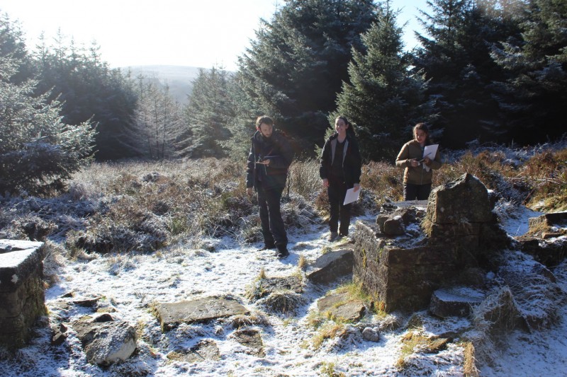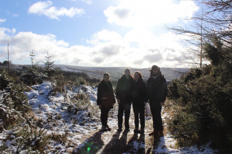 On Tuesday, we drove to the nearby village of Cadamstown to begin our assessment. We walked the pre-existing hiking path, Paul’s Lane Loop, which took us through the Slieve Bloom Mountains. It was a beautiful and snowy day, and we, as well as the two dogs with us, enjoyed the walk. Throughout the trail, we stopped to take photos and notes about the various archaeological sites and monuments we encountered. These included the abandoned village of Bordingstown and several artifacts within Cadamstown. We used maps from the National Monuments Service to track our walk and made necessary updates along the way.