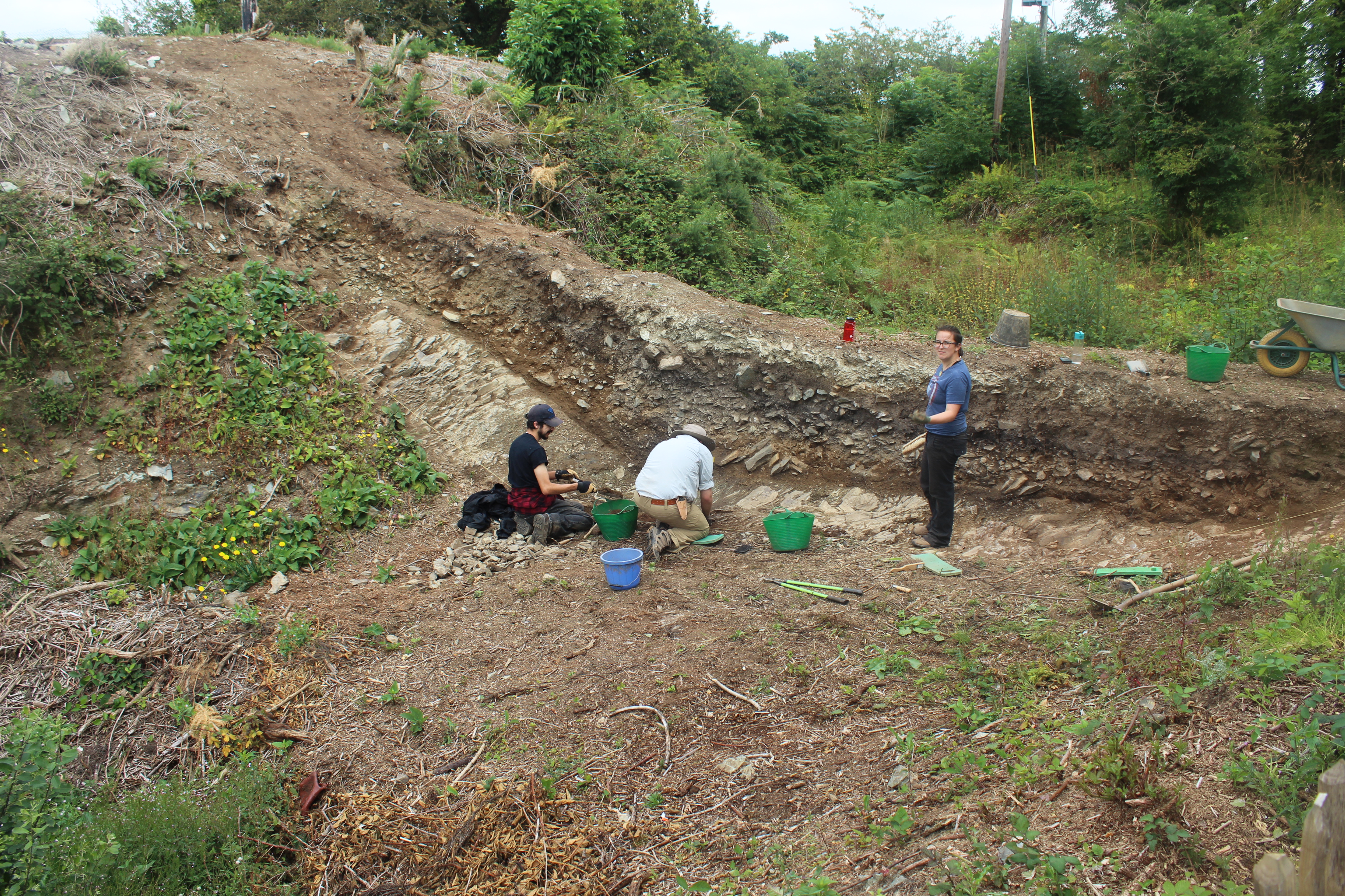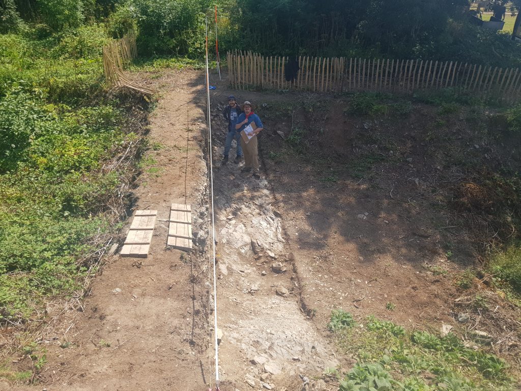 For the past few weeks I’ve been working in our new cutting, Cutting 5! It is inside the ringwork’s ditch. Claire Cotter excavated much of the ditch in 1986-7; however, a portion was left intact as a “baulk,” which is the location of Cutting 5. This baulk is of great interest to us because it is the only part of the ditch fill that remains.