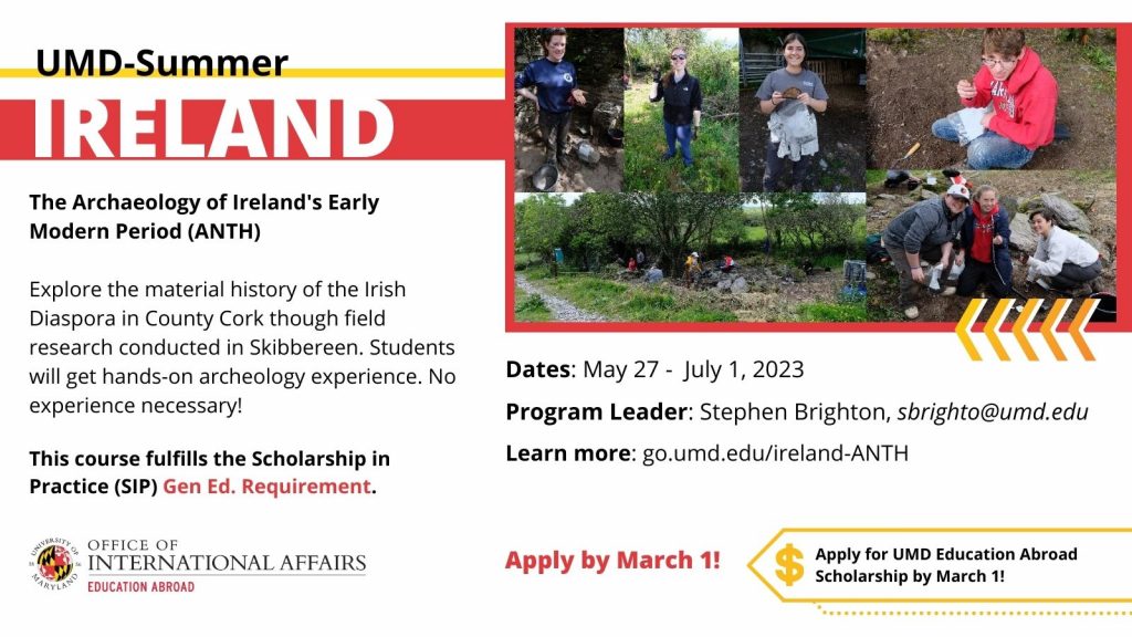 This summer’s Applied Field Program will explore the material history of the modern Ireland in Skibbereen, County Cork. Skibbereen is located 51 miles (82 km) southwest of Cork City. It became infamous as a metaphor for the impacts and horrific sufferings of the Great Starvation. Skibbereen is ideal due to its commitment to collecting Ireland’s rich heritage through the Skibbereen Heritage Centre.