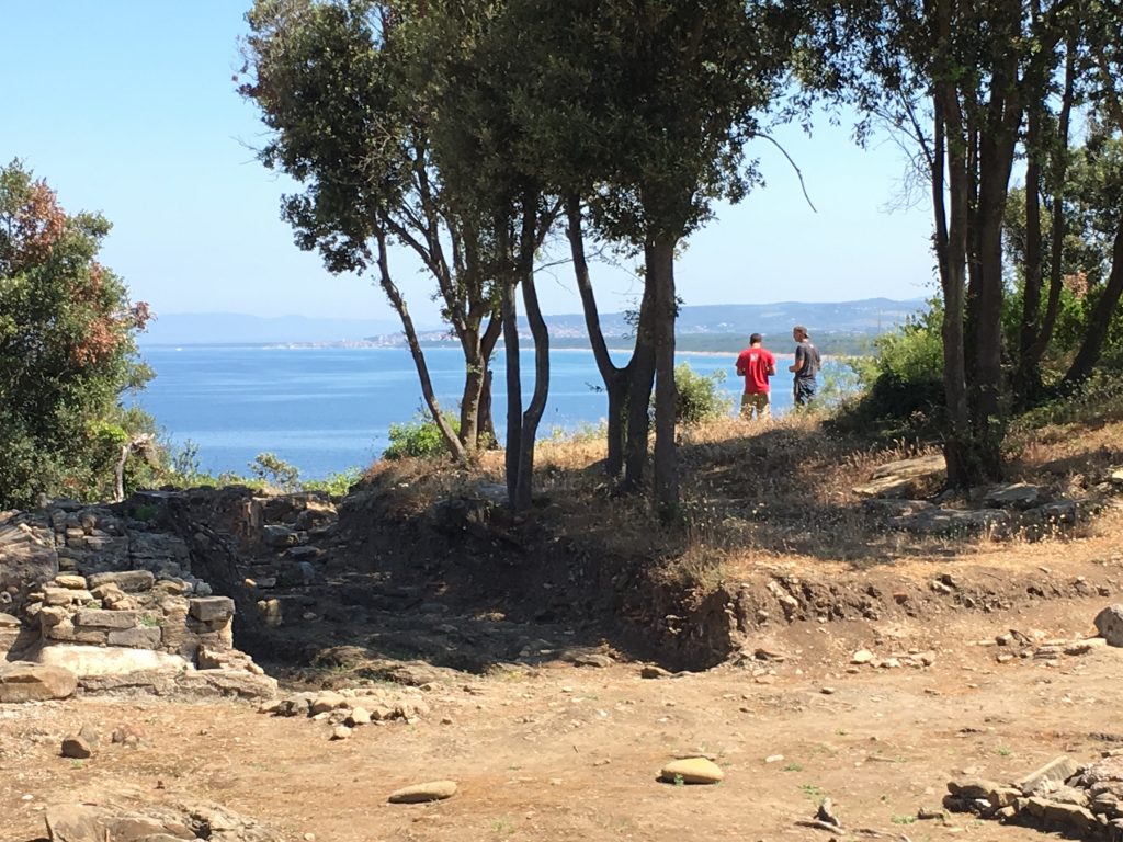 The archaeological site of Poggio del Molino overlooks the Tyrhennian Sea on a promontory forming the northern edge of the Gulf of Baratti, today a popular beach destination but in Etruscan and Roman times an important center of trade and iron production. At the southern edge of the gulf, just a few kilometers away, rests the Roman city of Populonia. During its long history, the territory around Populonia (including the Gulf of Baratti and Poggio del Molino itself) shifted from Etruscan to Roman control, a process which still presents many unanswered questions and remains a key research focus of the excavations at Poggio del Molino.