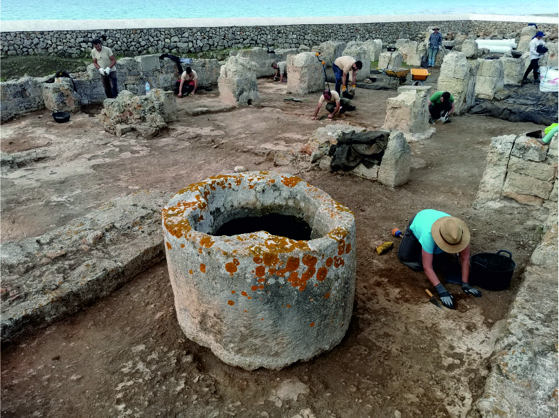 The research focuses on the archaeological excavation of the area around the Early Christian Basilica of Son Bou to discover the remains of the population that lived next to the temple. Through a baptismal font found in the church, we know that inhabitants were concentrated on the south coast of the island who lived thanks to agriculture, livestock and fishing. And quite possibly they would have commercial contacts with people from other nearby islands. We have evidence of ceramics that come from Ibiza and from more remote places in the East, from the Palestine area (present-day countries of Israel and Jordan).