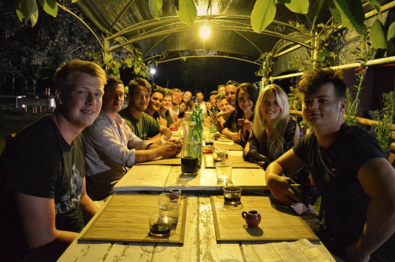 A typical work day starts at 8:00 AM and finishes around 5:30 PM. We take a short break at 11:00 and a long lunch starting at 1:00. On weekends, we work Saturday mornings and finish around 1:00; students usually go to the pool, play football (soccer) or hang out in local bars during the afternoon. On Sundays, we organise visits to archaeological sites and museums located throughout southern Italy, including Pompeii and Herculaneum, Paestum and Metapontum. On at least one Sunday, we include a trip to the beach.