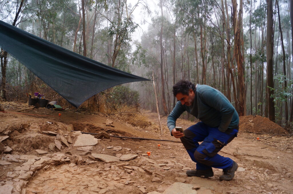 Castelo, a settlement approximately 14 ha in size and located at one of the highest points in the region, dates to the Late Bronze Age [LBA] and Iron Age of southwest Iberia. Castelo underwent a brief investigation in the early 2000s to safeguard surface artifacts in danger of being destroyed. Our 2018 season was the site’s first comprehensive excavation and uncovered the largest known Bronze Age hut (cabana) in the southwest of Iberia. Work on the hut and additional areas of the site continued during the 2019, 2022-2025 seasons. This work has revealed several structures, including overlapping huts, platforms, hearths, and a surrounding defensive system.