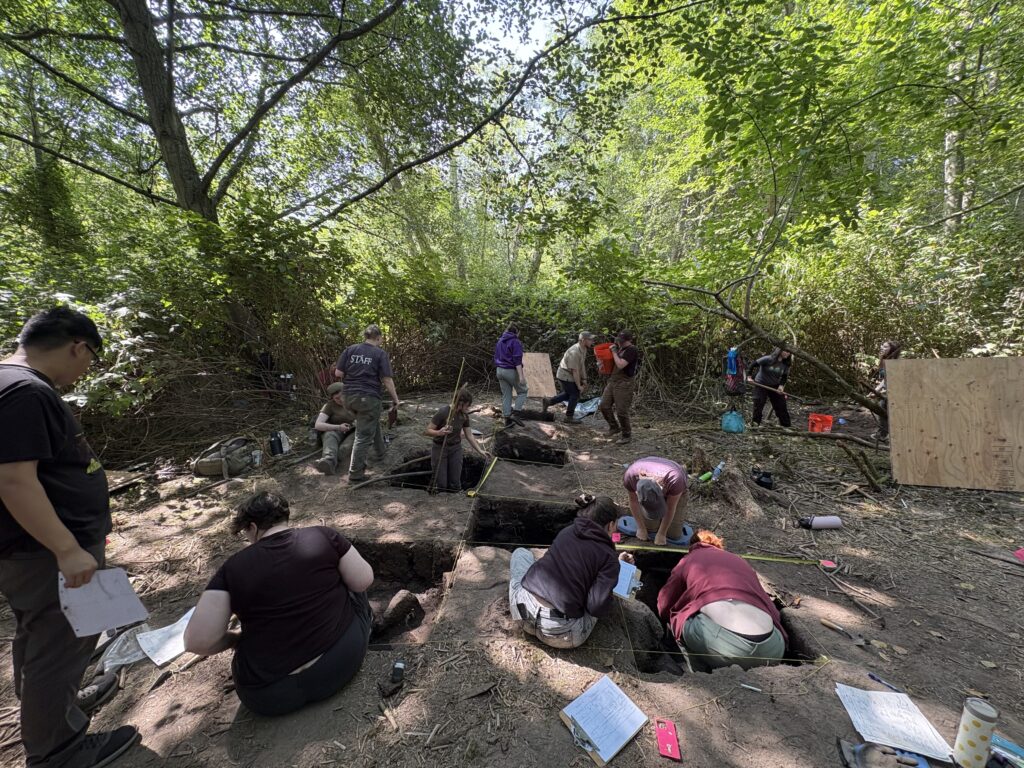 Period(s) of Occupation: Japanese Gulch developed alongside the Mukilteo Lumber Company, which began hiring Japanese workers in 1903. The community grew from 35 residents in 1903 to 100 by 1909, expanding further after the Crown Lumber Company purchased the mill. Japanese-American workers were vital to industries across the Pacific Northwest, including lumber, farming, and railroads (NWAA 2009, 14). Ethnographic accounts and archaeological evidence reveal a vibrant community with single-story family homes, a dormitory for 45 single men, a playground, a community hall, and a boys’ club (SWCA 2011, 13–14). Residents sourced goods from Japan or local merchants, utilized nearby resources, and shopped at the Crown Company Store (NWAA 2009, 55–56). However, the late 1920s economic downturn led to the Crown Lumber Company’s closure in 1930, causing residents to leave in search of work and marking the decline of Japanese Gulch. Join us during our 2026 season to uncover more details about this community and their everyday lives. Students learn and practice standard archaeological field and lab skills necessary to work in Cultural Resources Management Careers.