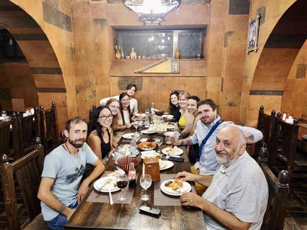 Participants will share rooms in a house in the capital city of Yerevan in central Armenia. The house is shared with an Armenian family that has been hosting field school participants for over a decade. Breakfast, lunch, and dinner are provided by the program. Meals include traditional Armenian and Georgian dishes, like khorovats (barbeque) and khinkali (dumplings). Purified drinking water is provided. There are both indoor and outdoor common areas where we eat, relax, and chat. The city center is a short walk or quick taxi ride from the accommodations (~10–20 minutes). Yerevan is a sprawling capital with numerous museums, restaurants, and cultural attractions.