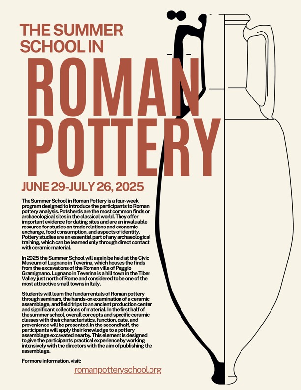 The Summer School in Roman Pottery is a four-week program designed to introduce the participants to Roman pottery analysis. Potsherds constitute the most common finds on archaeological sites in the classical world. They offer important evidence for dating sites and provide a major source for studies including trade relations and economic exchange, food consumption and aspects of identity. So, pottery studies form an essential part of any archaeological training, the basics of which can be learned only through direct contact with ceramic material.