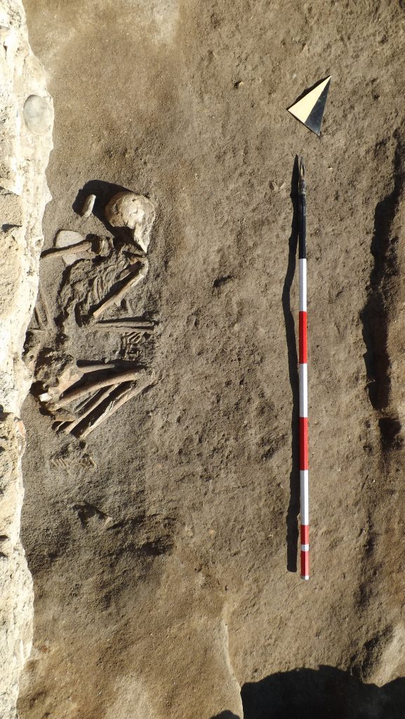 Since the very start of the our excavation in 2013 , tombs were dug out. So we understood that during the Vth-VIth cent. AD – the building being already abandoned – the area and the structures were used as a cemetery – a common practice in Late Antiquity.